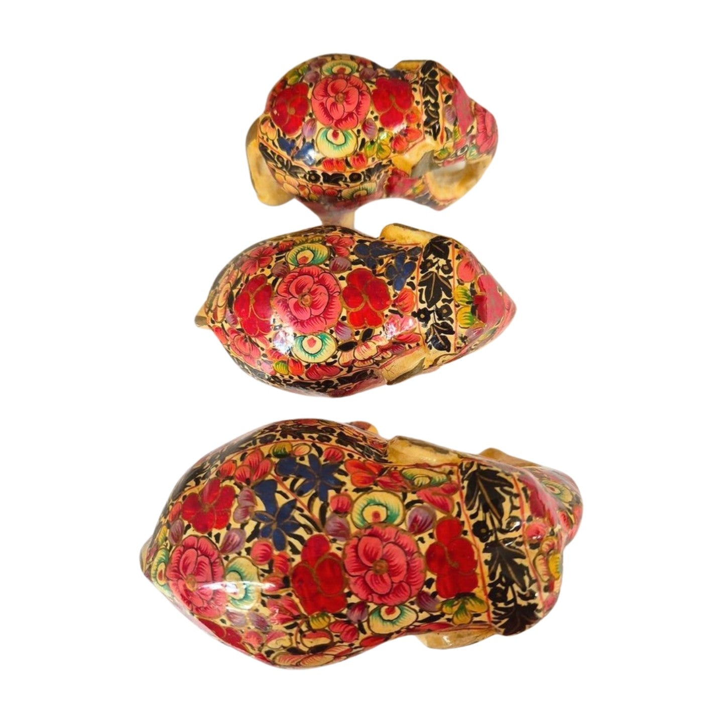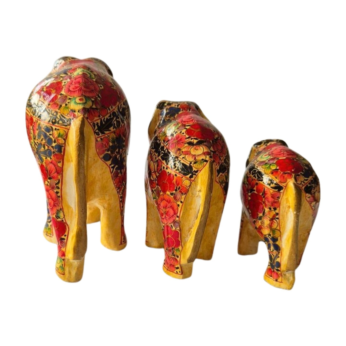A 'Family' of 3 Handmade Papier Mache Elephant, made in Kashmir, India.
