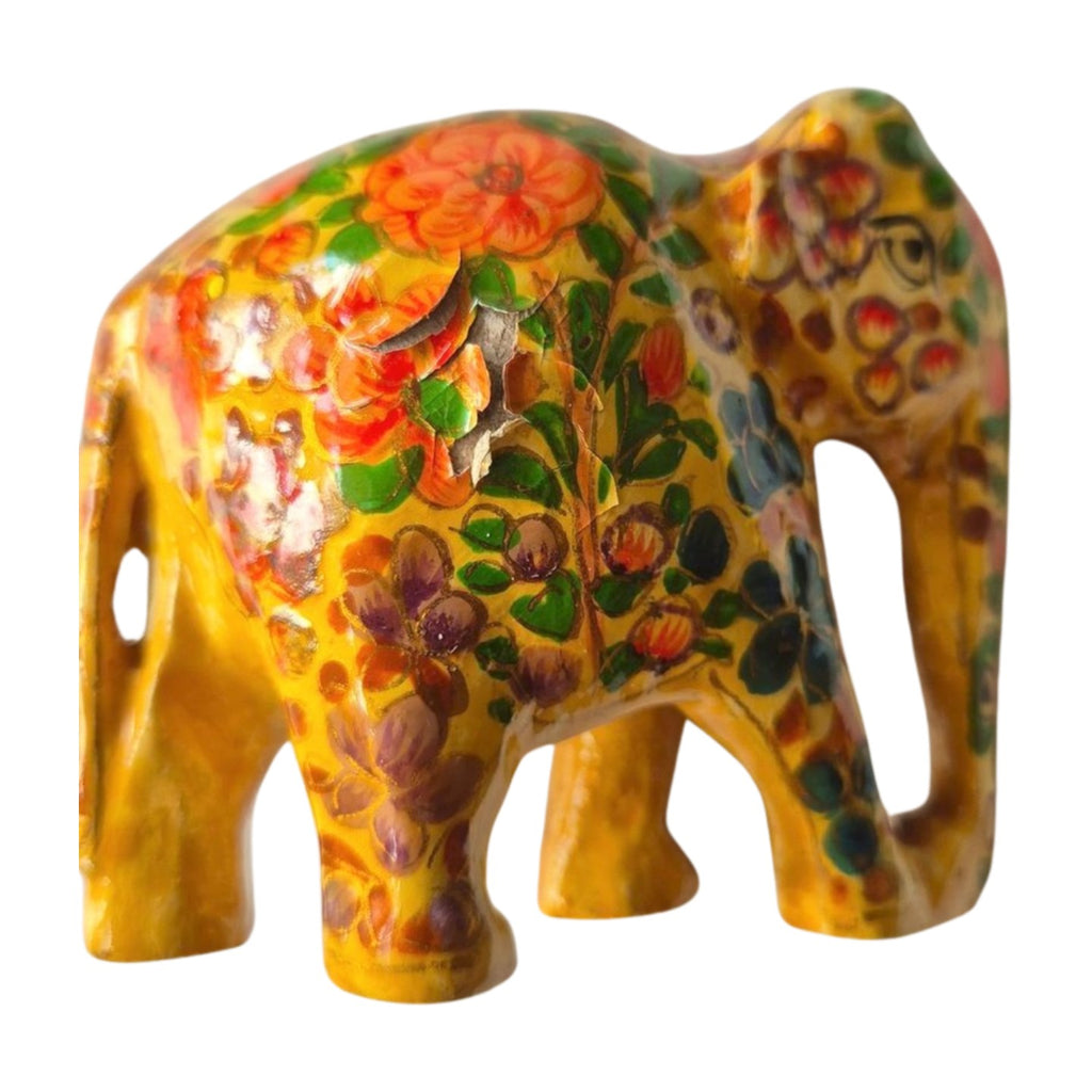 DAMAGED - Kashmiri Elephant Family - Gold and Floral