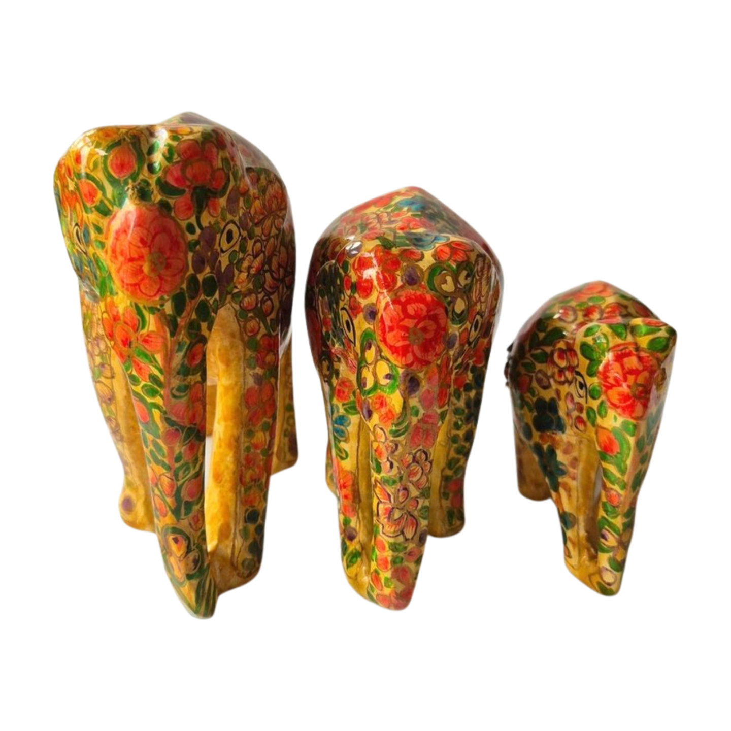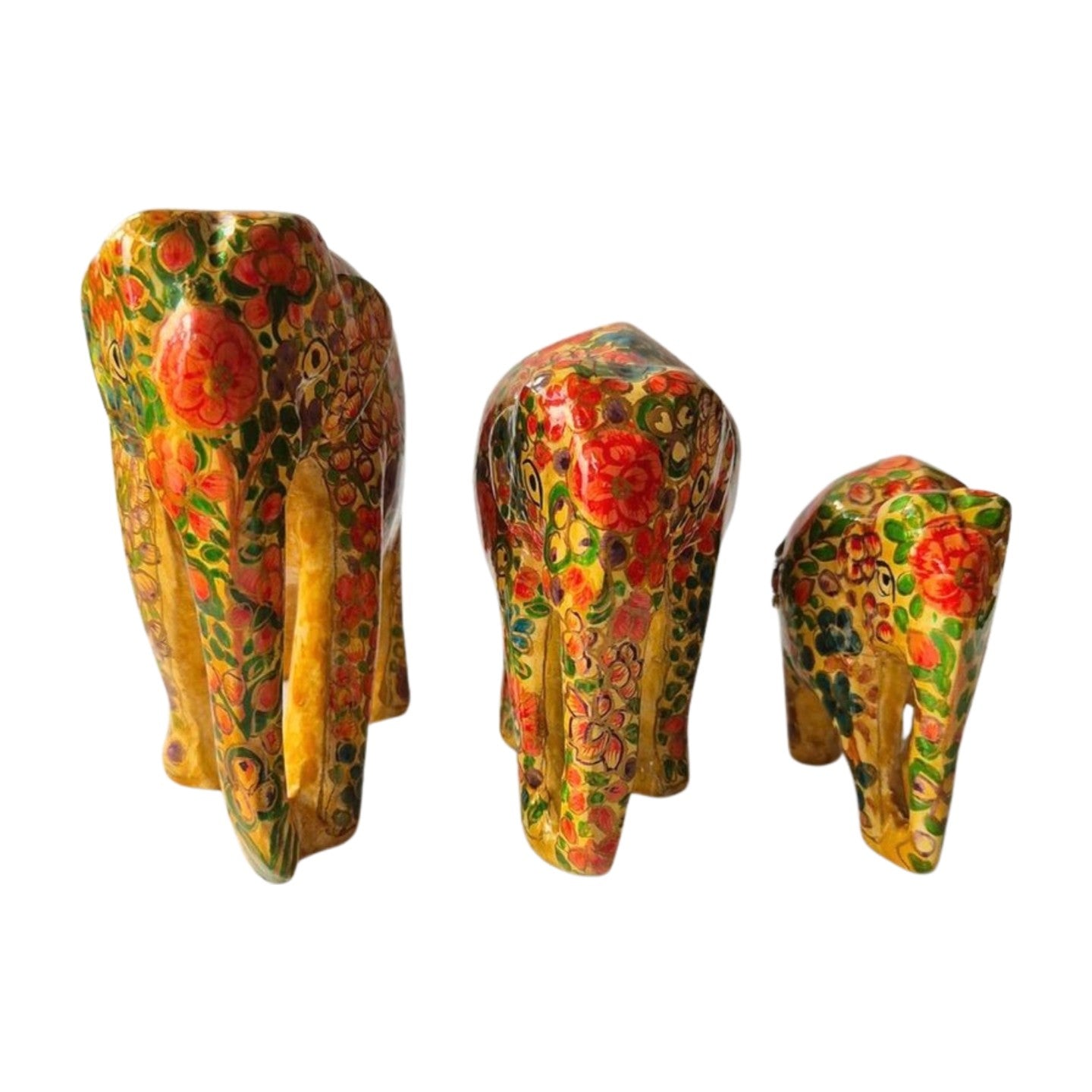 A 'Family' of 3 Handmade Papier Mache Elephant, made in Kashmir, India.