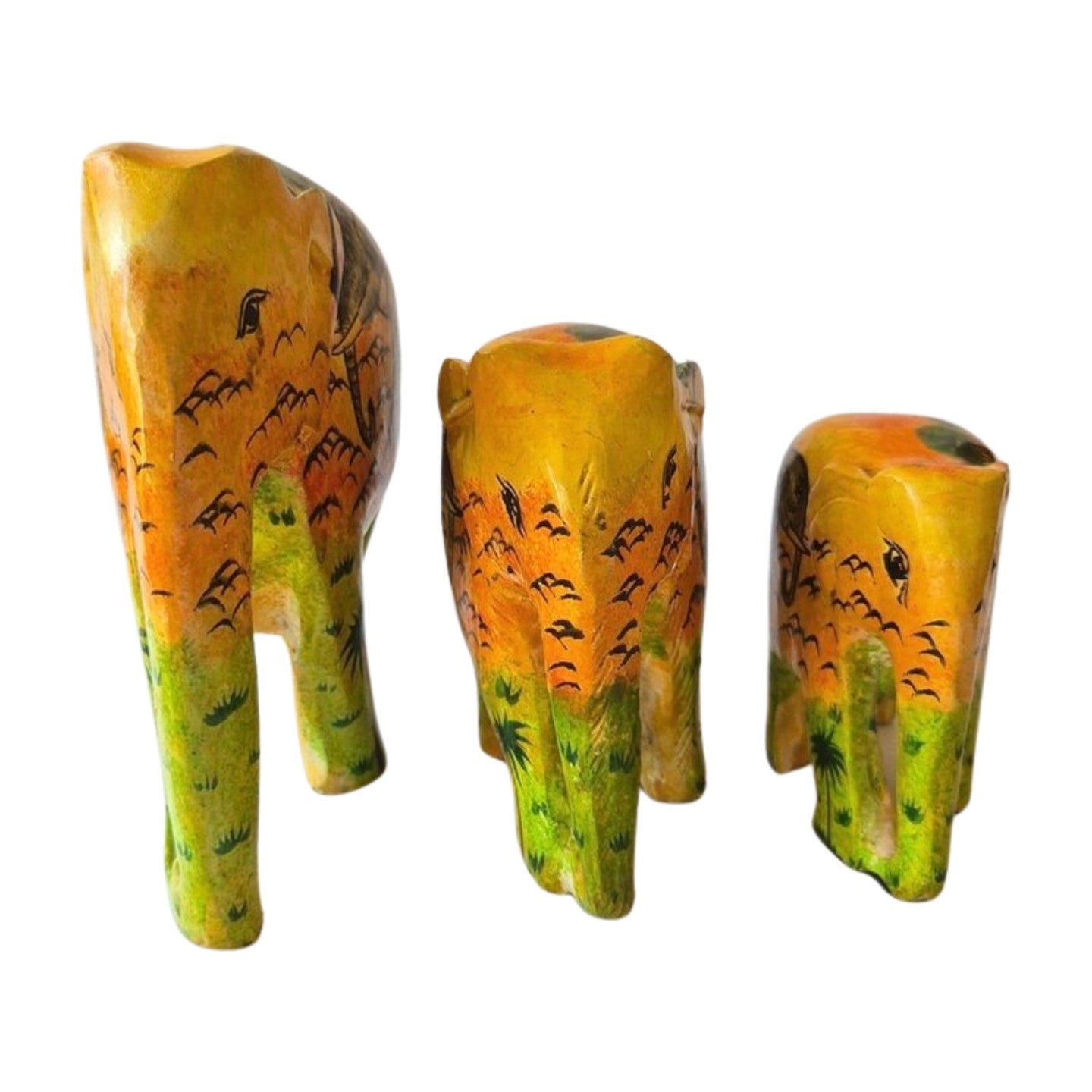 A 'Family' of 3 Handmade Papier Mache Elephant, made in Kashmir, India.