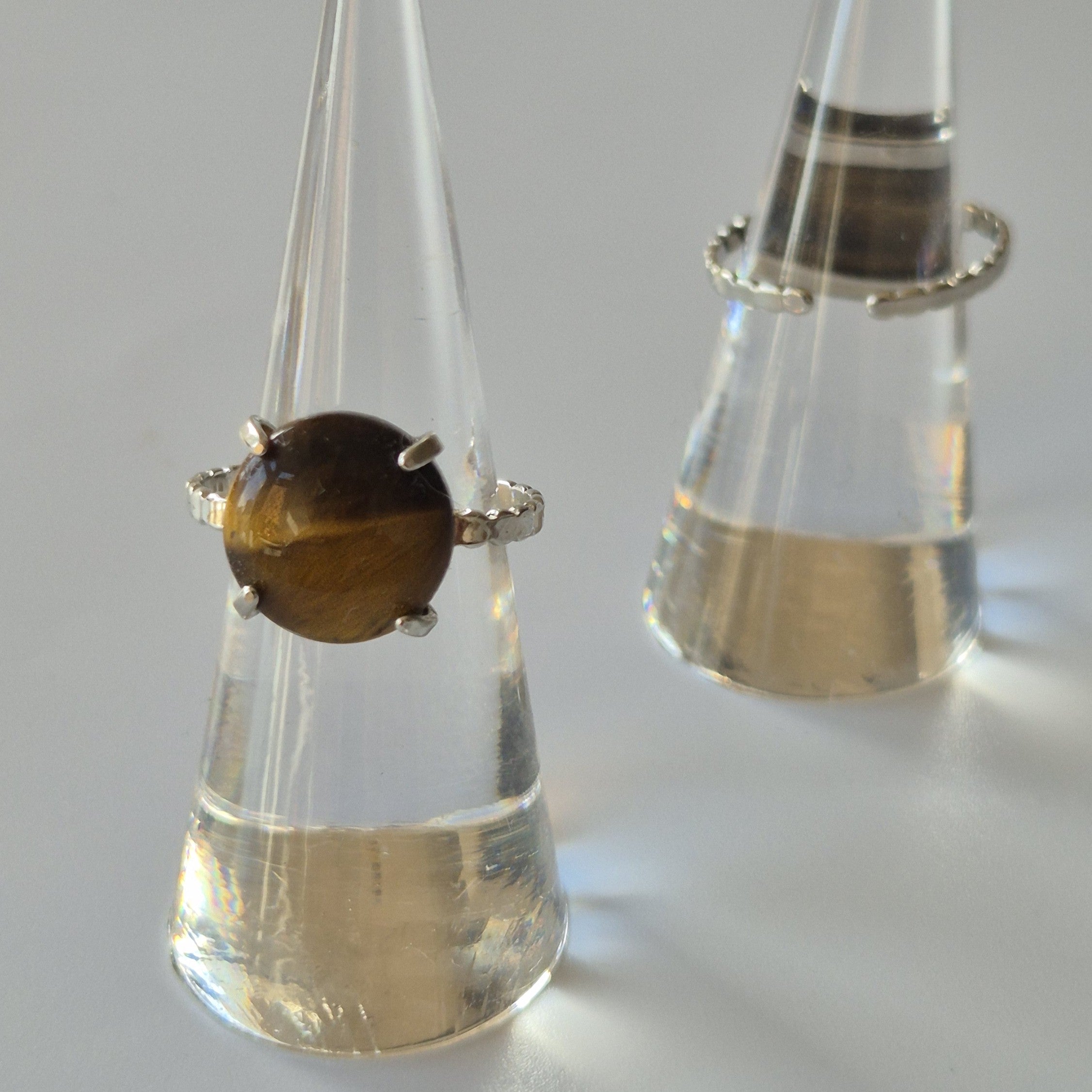 Tiger Eye Ring - Silver Plated - Nickel and Rhodium Free - Copper Base - Adjustable Ring