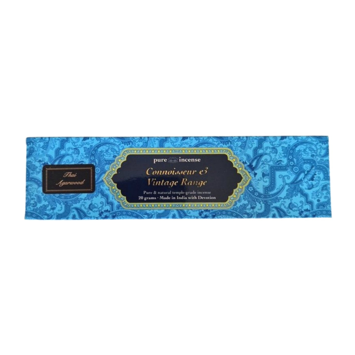 Thai Agarwood in the Connoisseur & Vintage range from Pure Incense - Premium Indian Incense Sticks hand rolled incense with generous quantities of pure Agarwood essential oil (Attar) from Thailand. This offers a very mellow and soft scent for an Agarwood, so it is very different from what you may expect from an Agarwood oil-based stick. 'Listen' carefully and you'll detect some bright floral notes in the background when burning.
