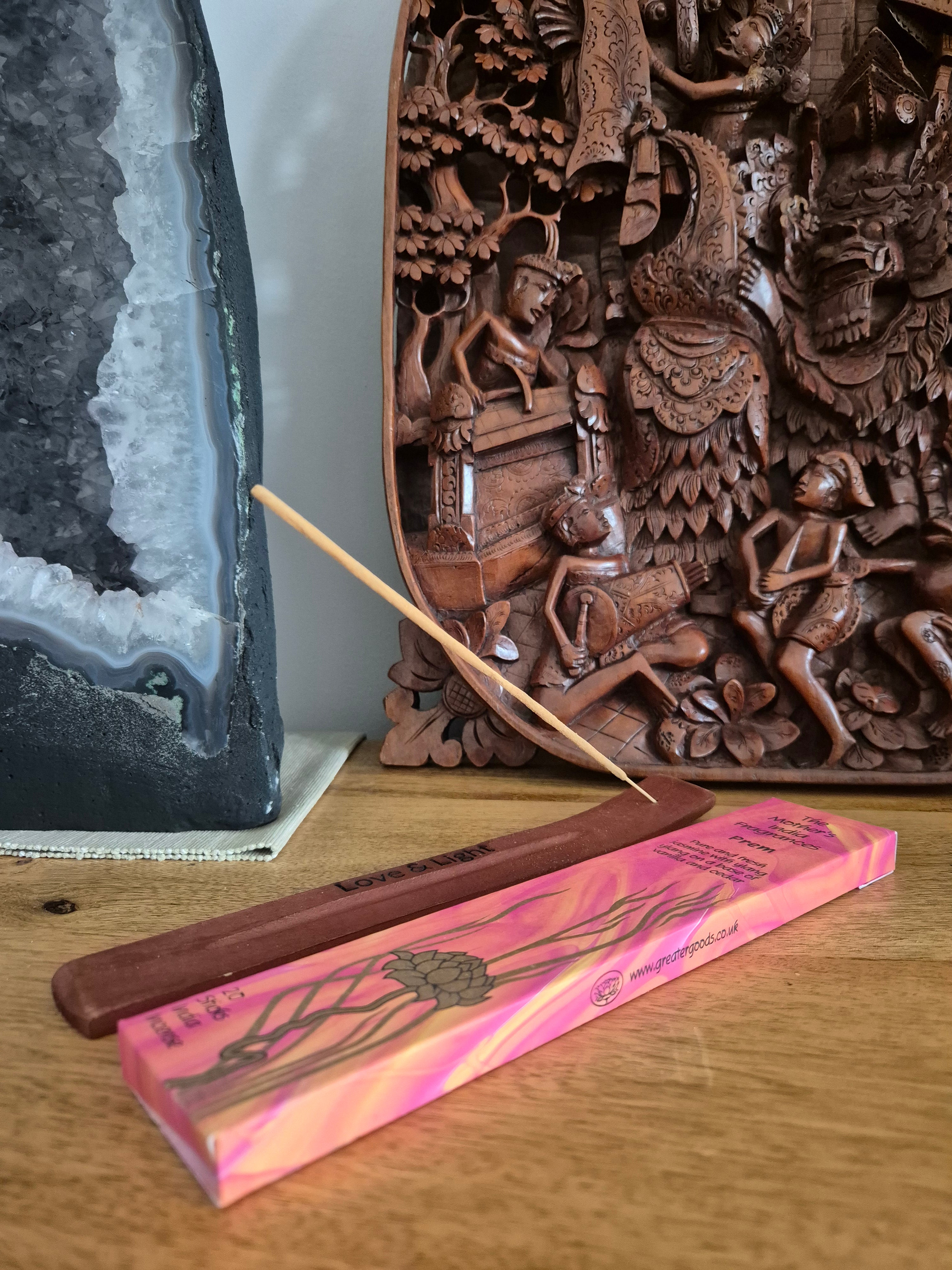 The Mother's India Fragrances incense is made from pure natural ingredients, hand-rolled by the ancient masala method. It's a premium-quality fair-trade product, made at Pondicherry in South-eastern India. The end result is a light and clean-burning incense of exceptional quality.