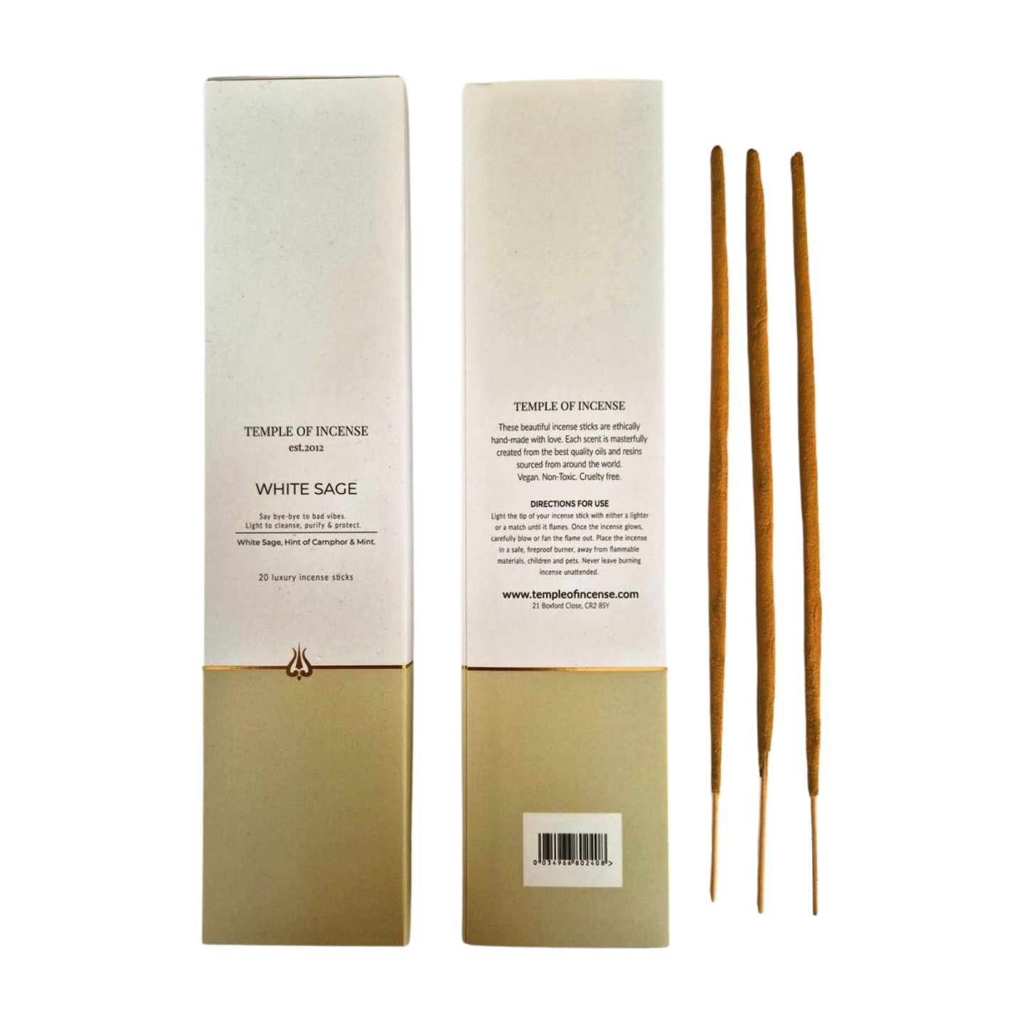 White Sage - Say bye-bye to bad vibes. Light these white sage incense sticks to cleanse, purify and protect. All the benefits of sage, with the lift of camphor and mint for an overall more pleasant scent.