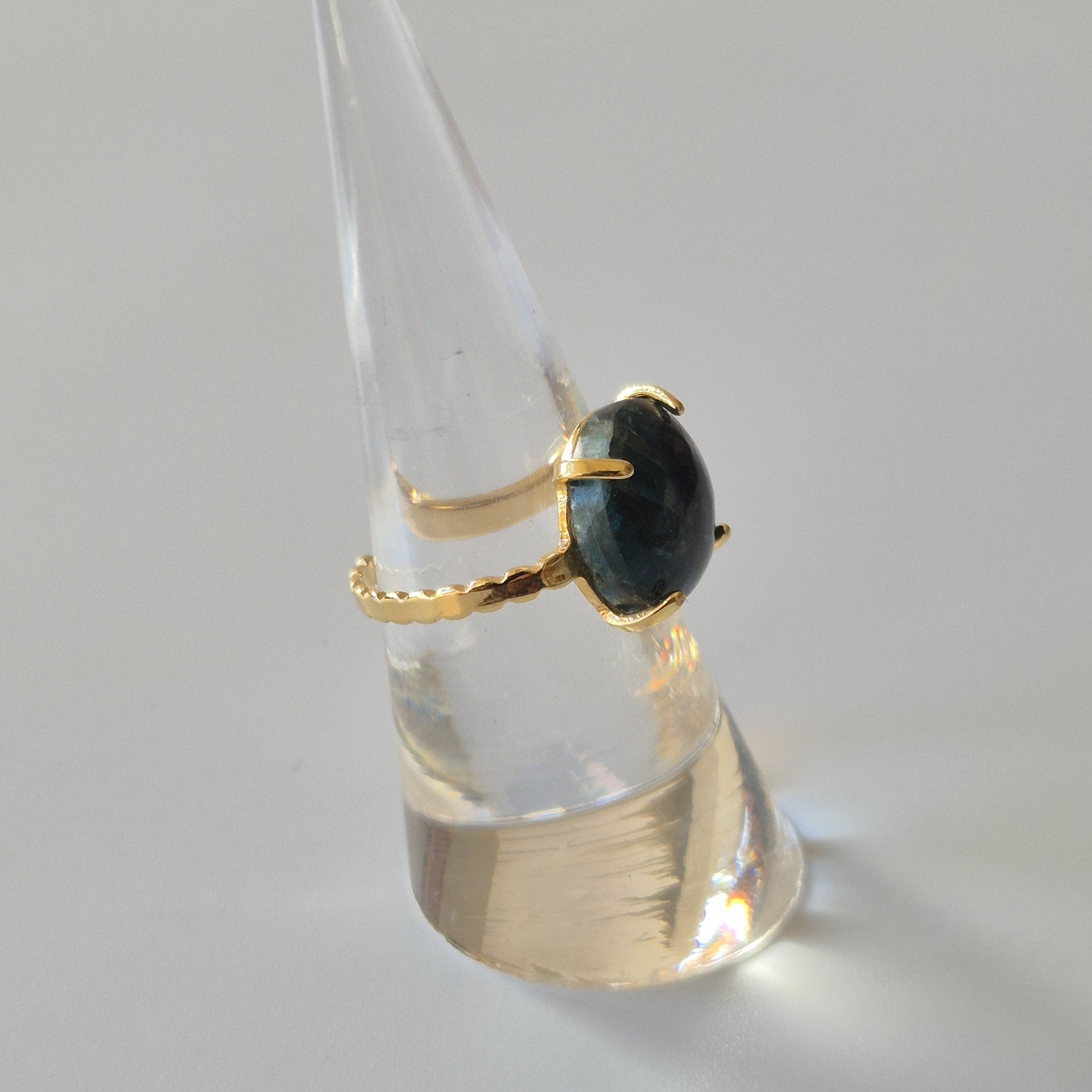 Elevate your jewellery collection with this refined blue apatite ring, crafted from a copper base and finished with luxurious gold plating. Designed for those with sensitive skin, this piece is entirely nickel and rhodium-free, ensuring comfort without compromise. The stunning blue apatite stone brings a touch of natural elegance, while the adjustable sizing guarantees a perfect fit for any occasion. A sophisticated accessory that seamlessly transitions from everyday wear to special moments.
