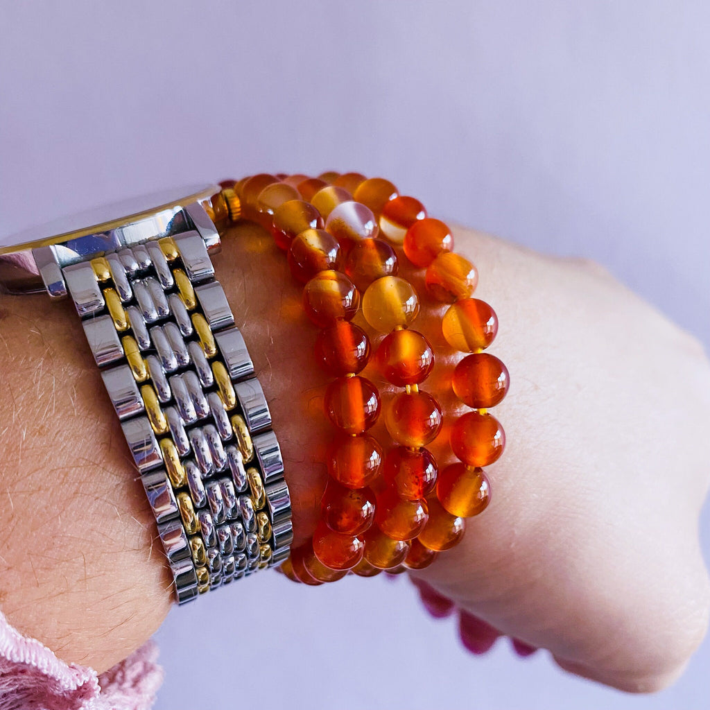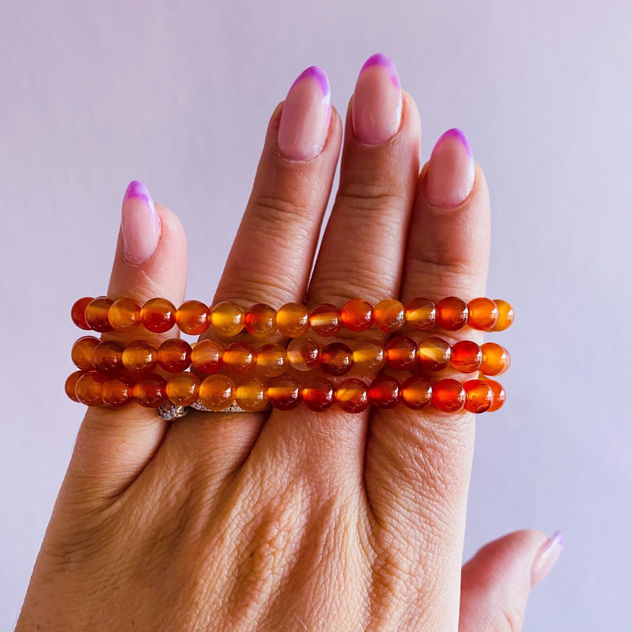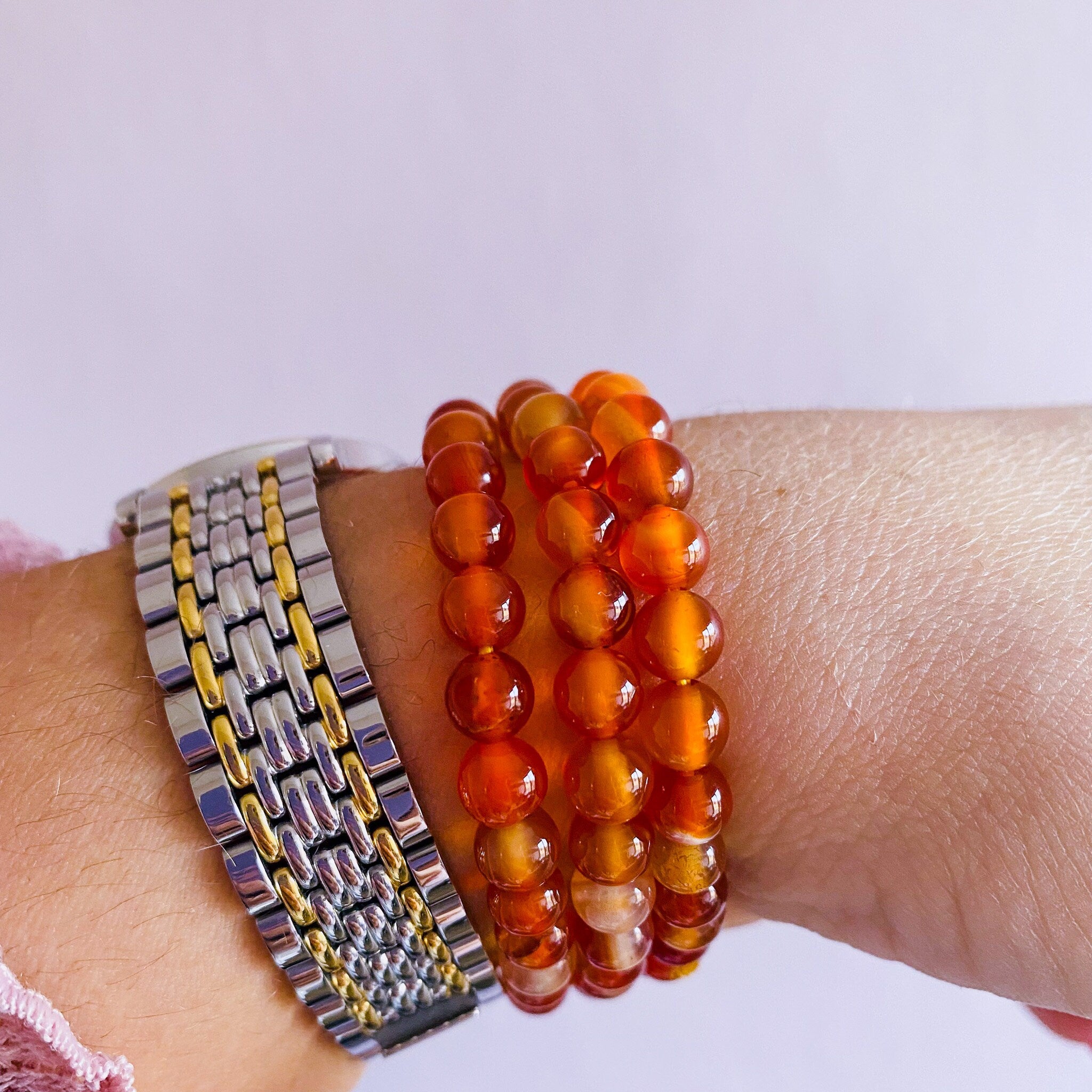 Carnelian Crystal Bead Bracelets / Helps With Any Type Of Abuse / Very Stabilising / Eases Worries & Anxiety / Works With Heart Chakra