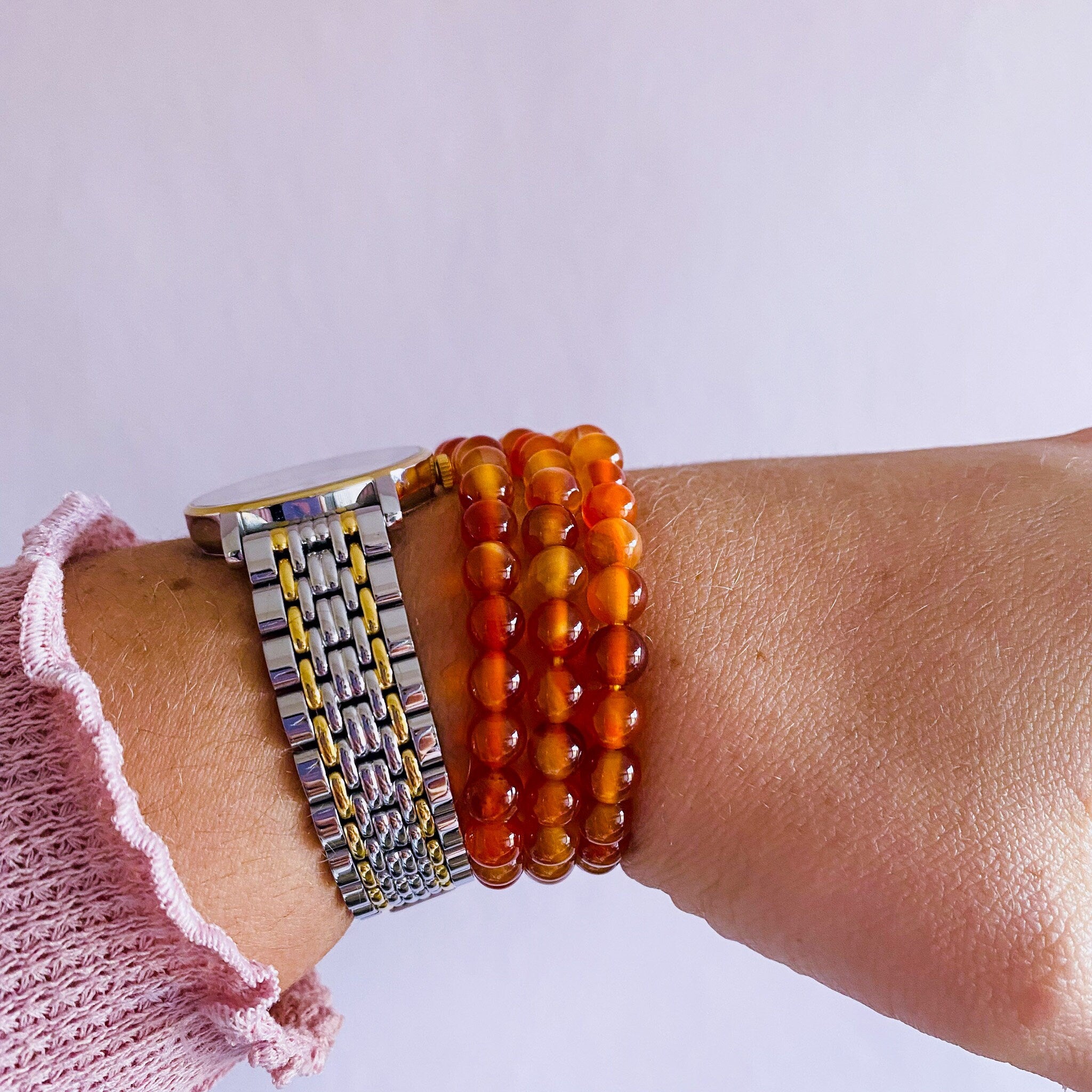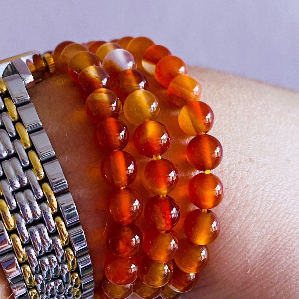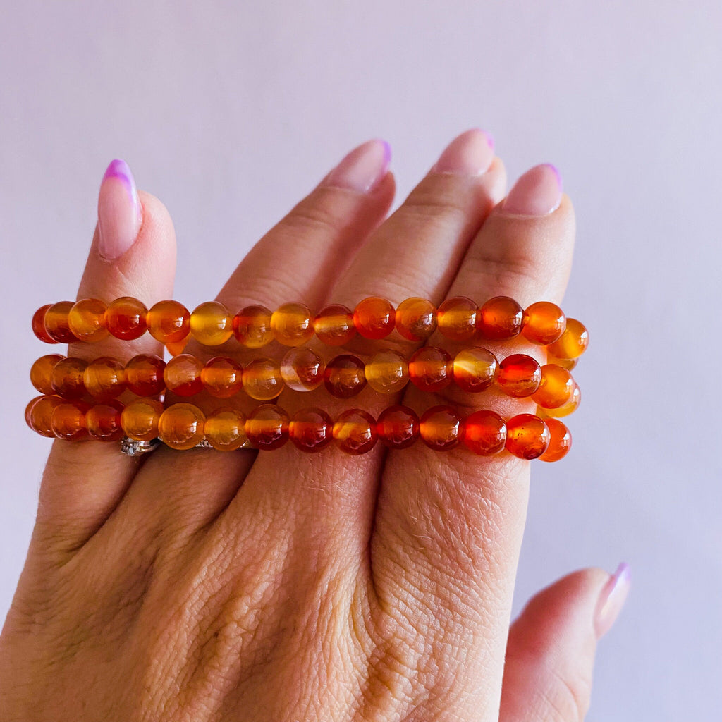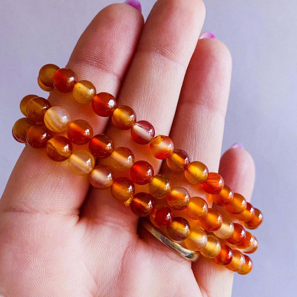 Carnelian Crystal Bead Bracelets / Helps With Any Type Of Abuse / Very Stabilising / Eases Worries & Anxiety / Works With Heart Chakra