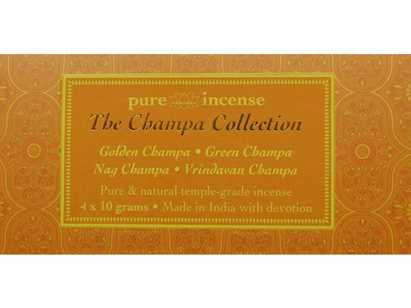 Champa Collection Indian Incense from Pure Incense Absolute. A 40 gram Box featuring 4 amazing Champa scents.