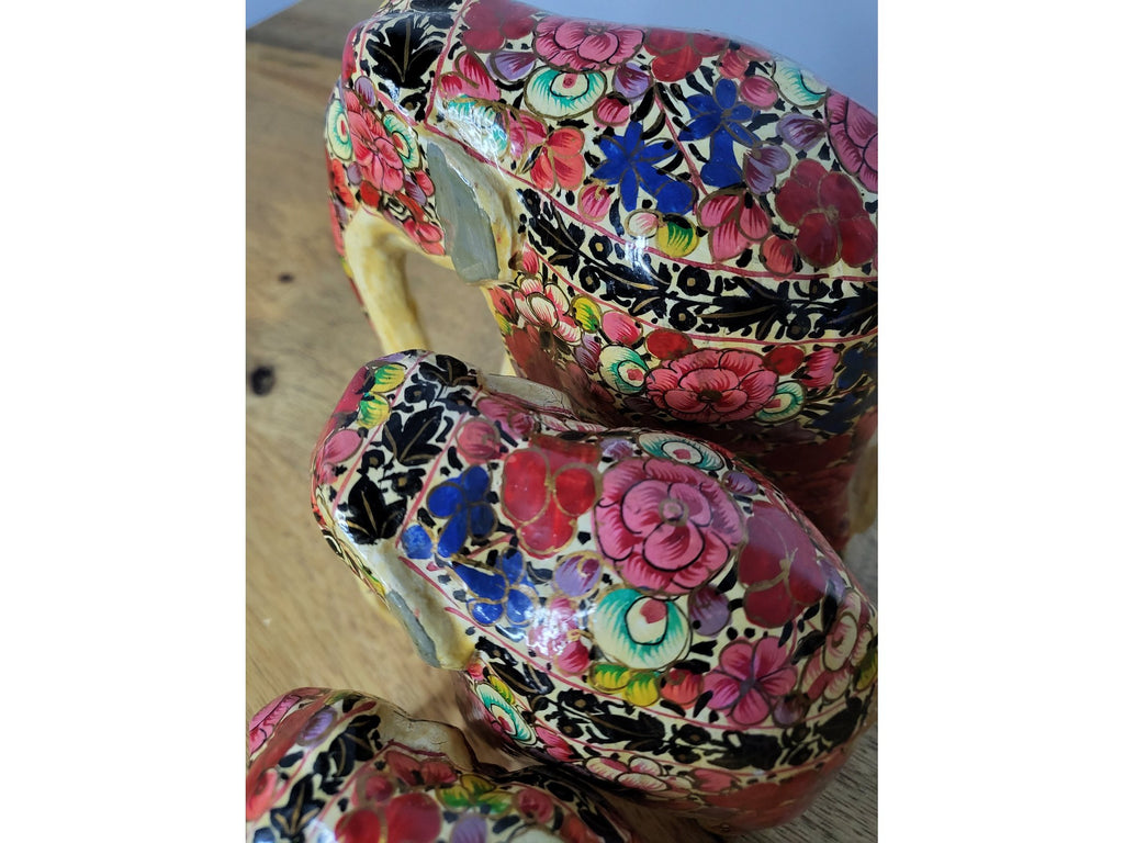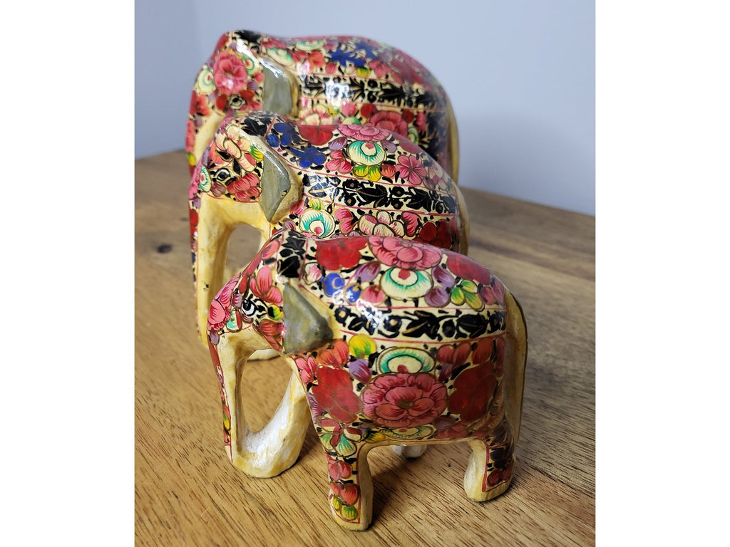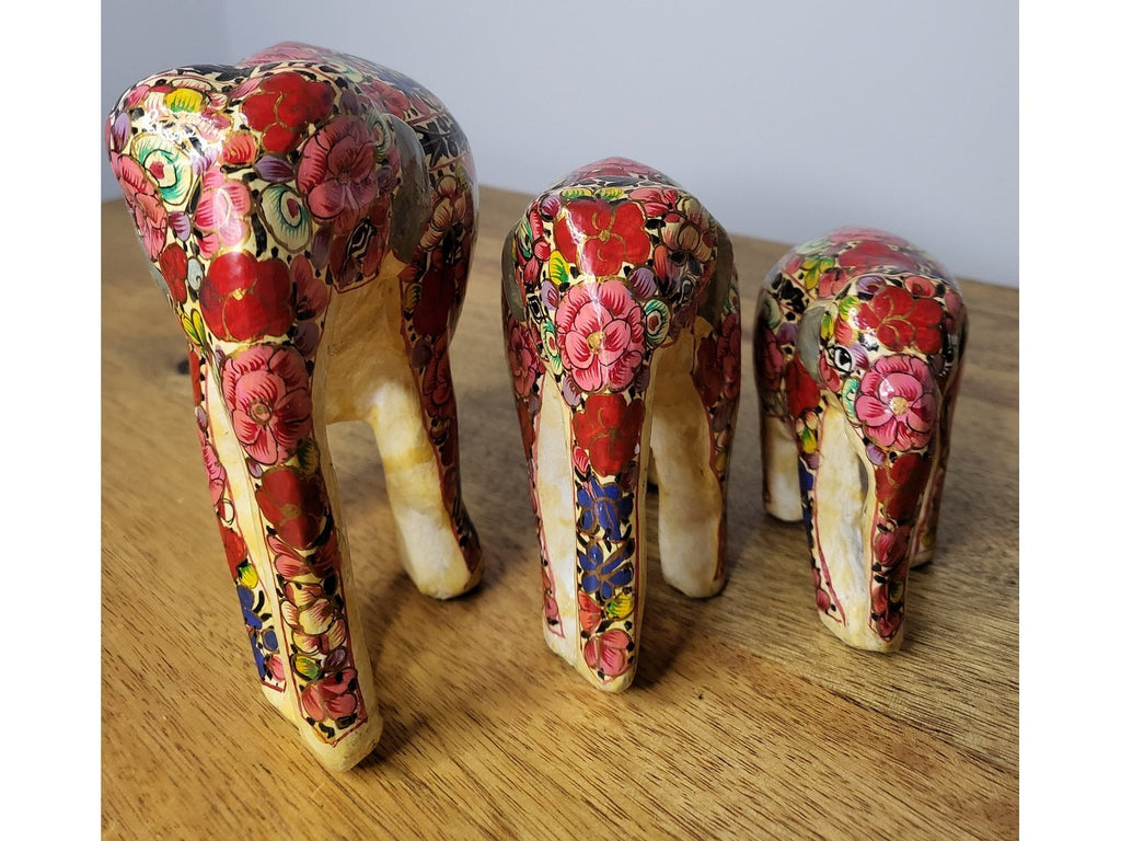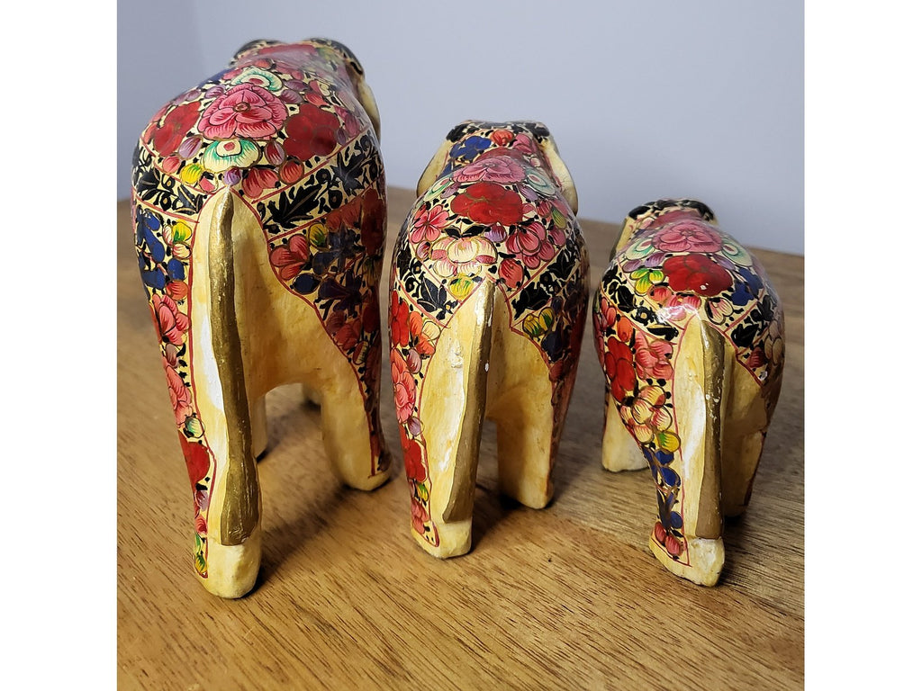 A 'Family' of 3 Handmade Papier Mache Elephant, made in Kashmir, India.