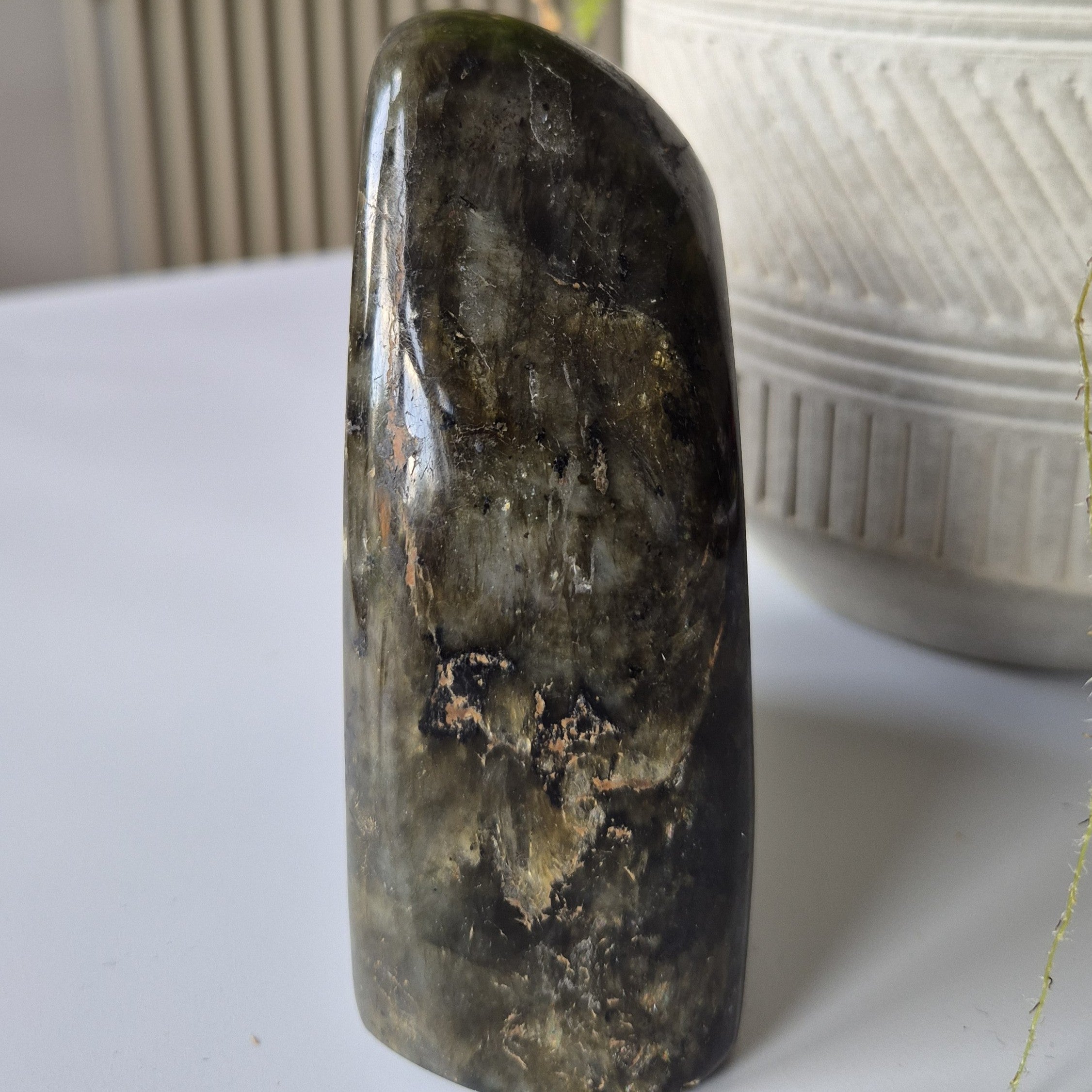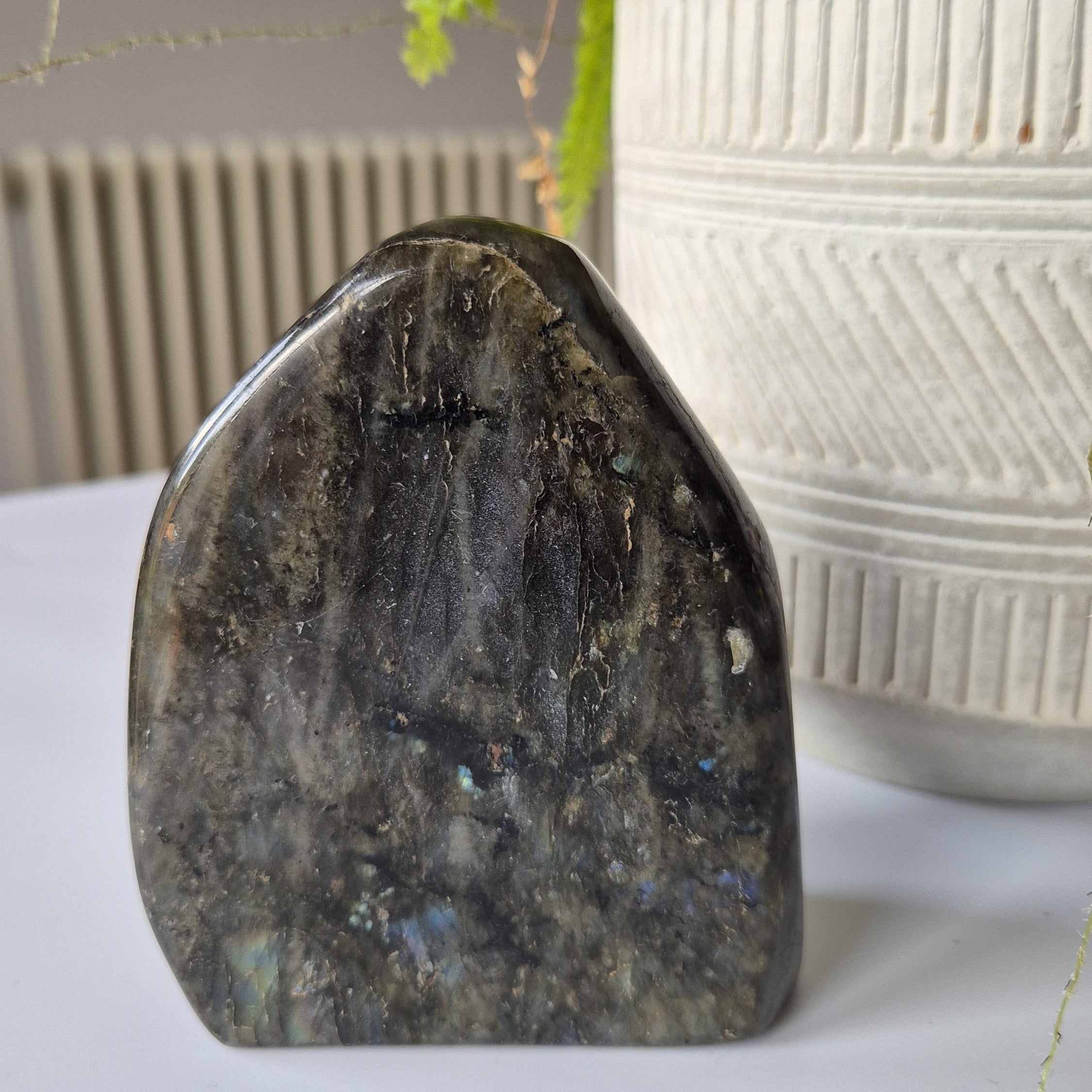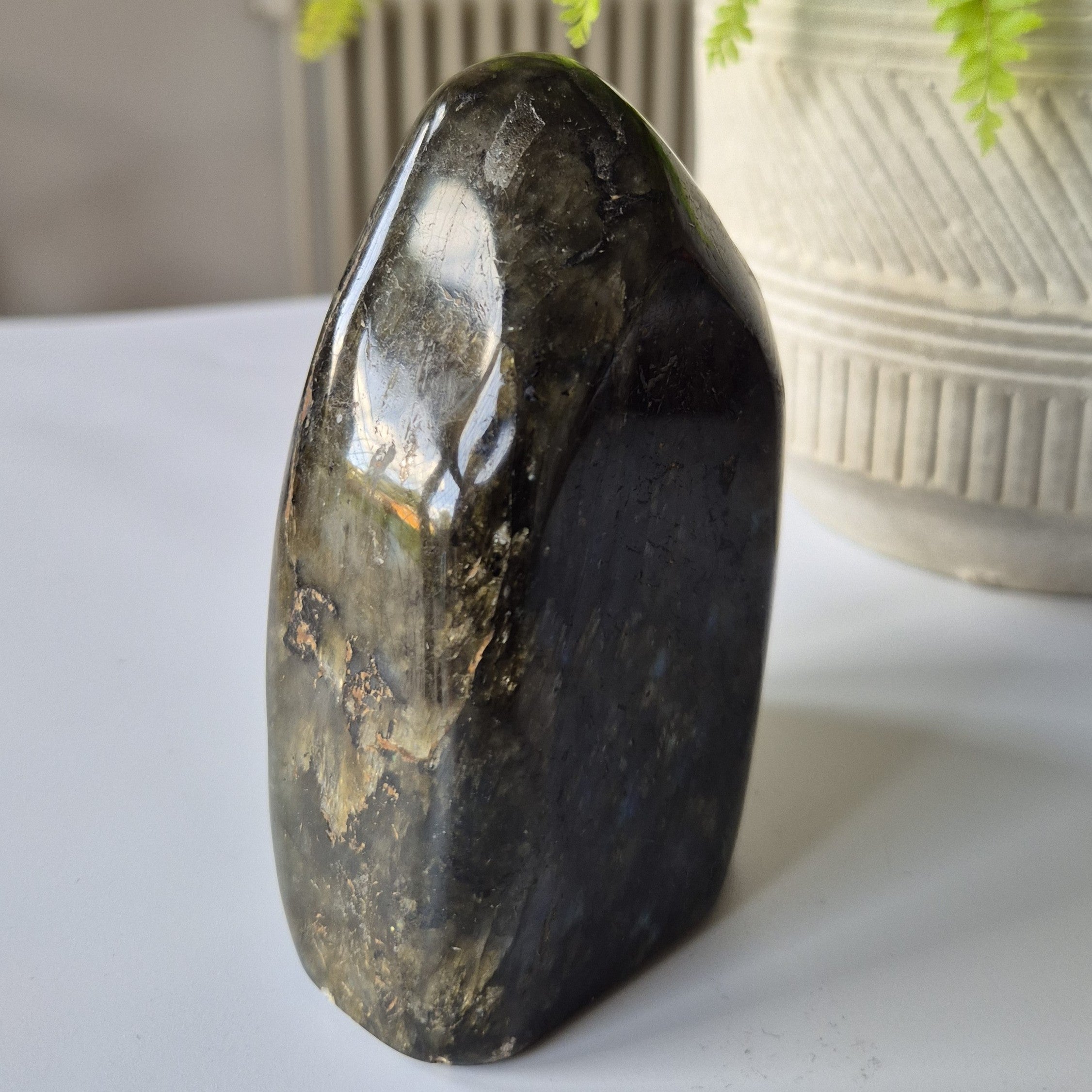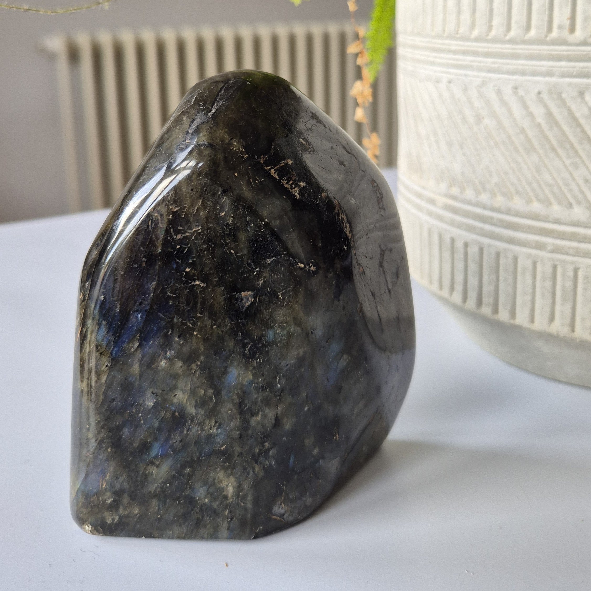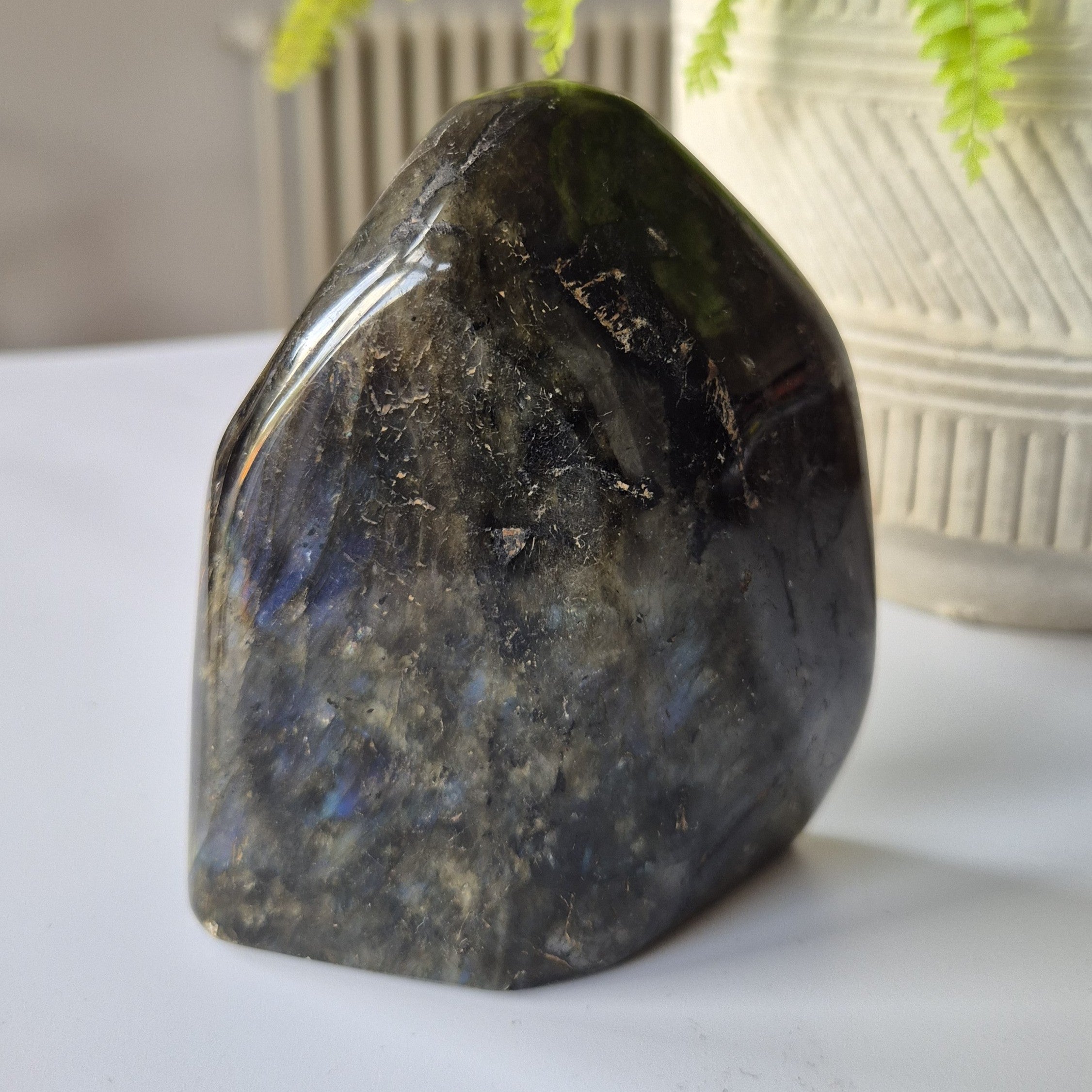 This piece showcases the famous labradorescence – flashes of blue, green, gold, and violet shimmering across its surface. Each angle reveals a new spectrum of colour, making this natural Labradorite crystal truly mesmerizing.