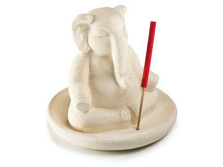 Meditating elephant incense holder, gypsum, 11 x 10cm