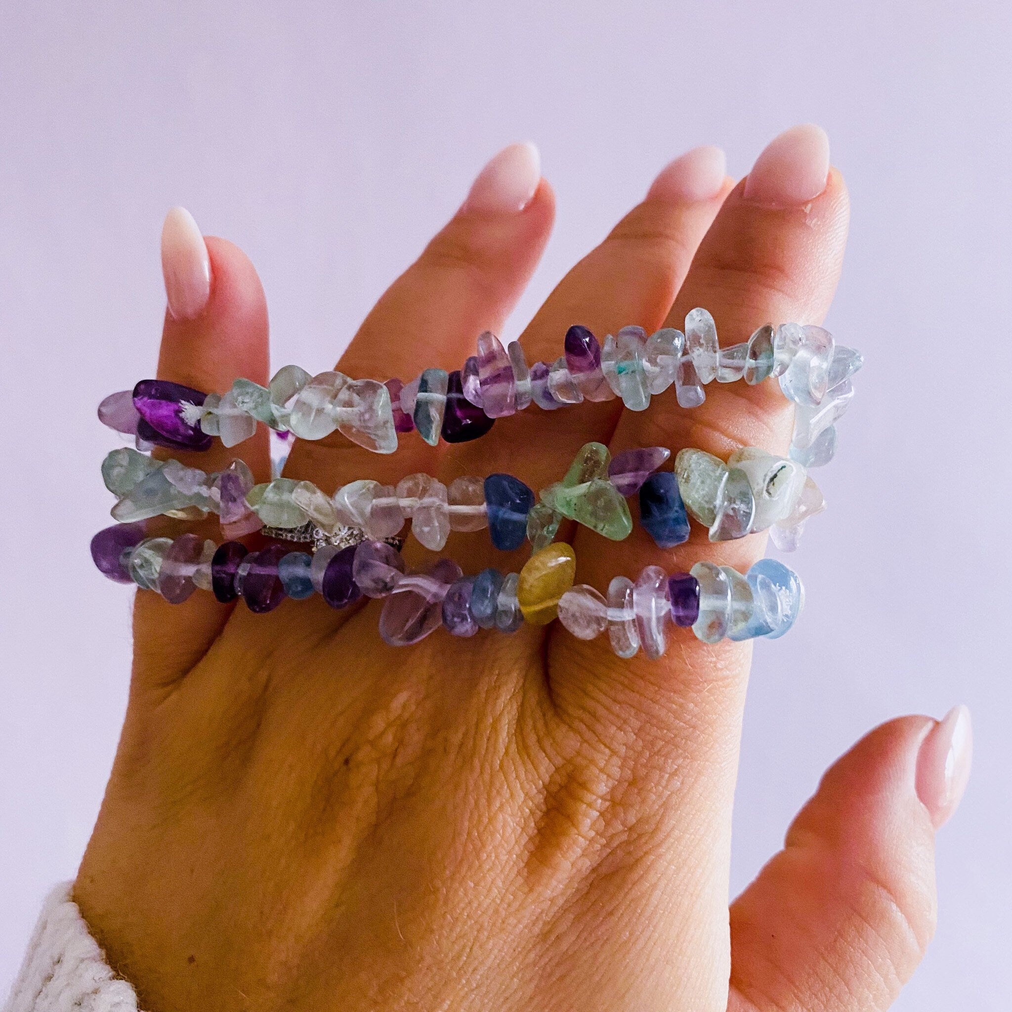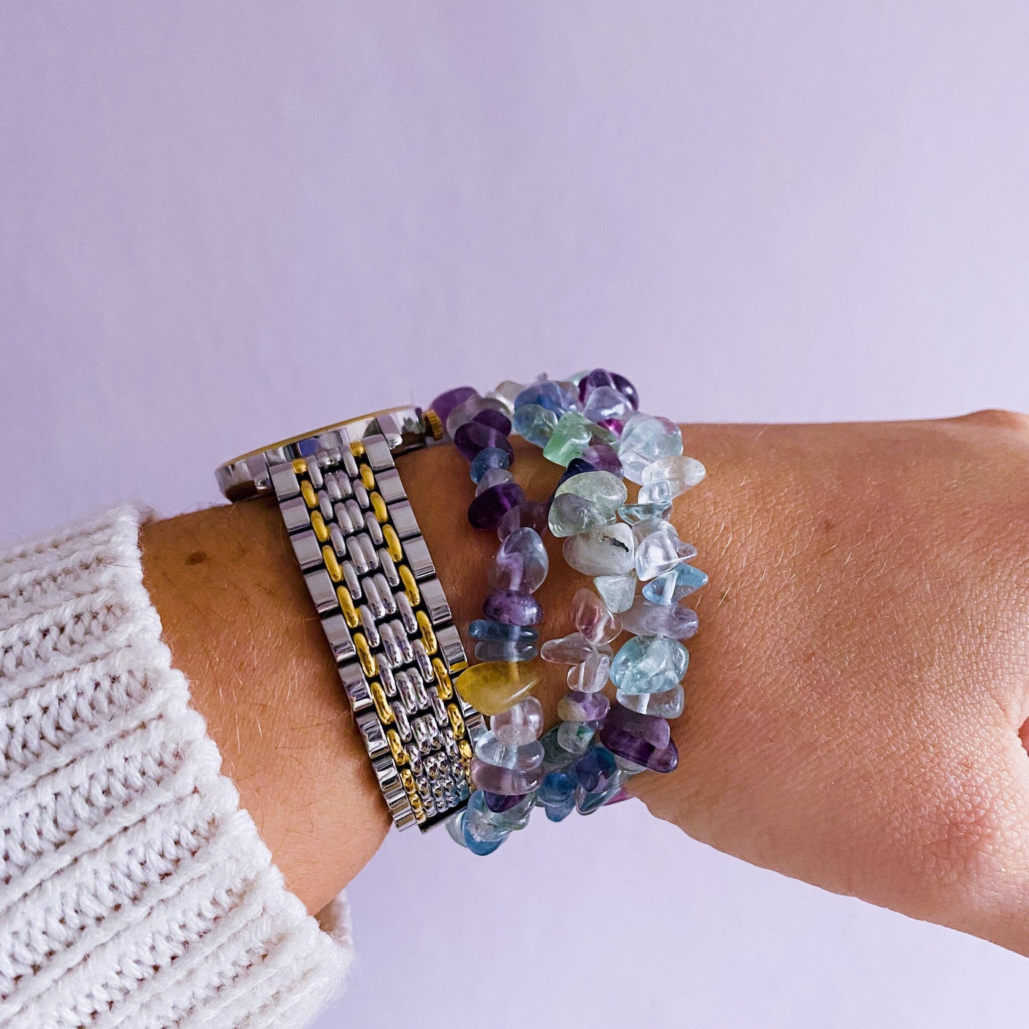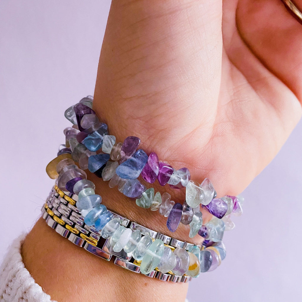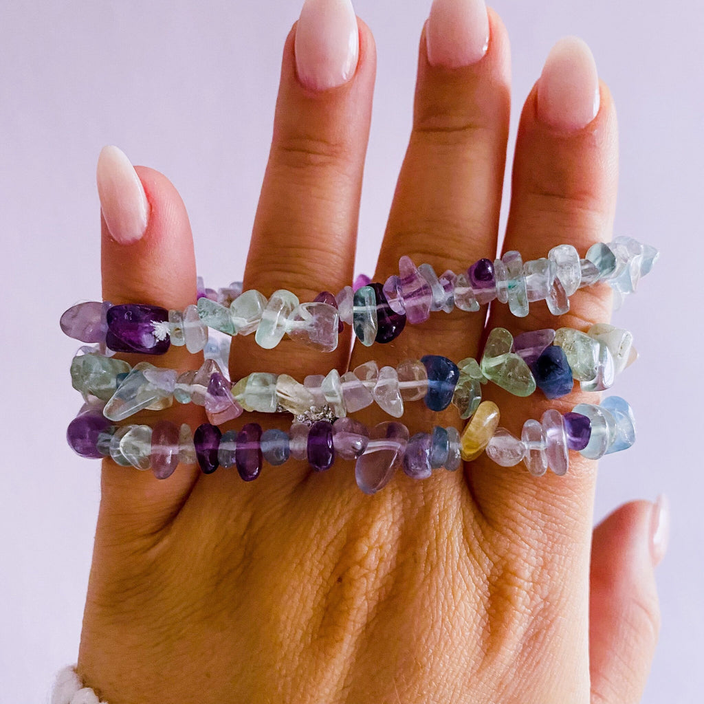 Gorgeous Rainbow Fluorite crystal chip bracelets