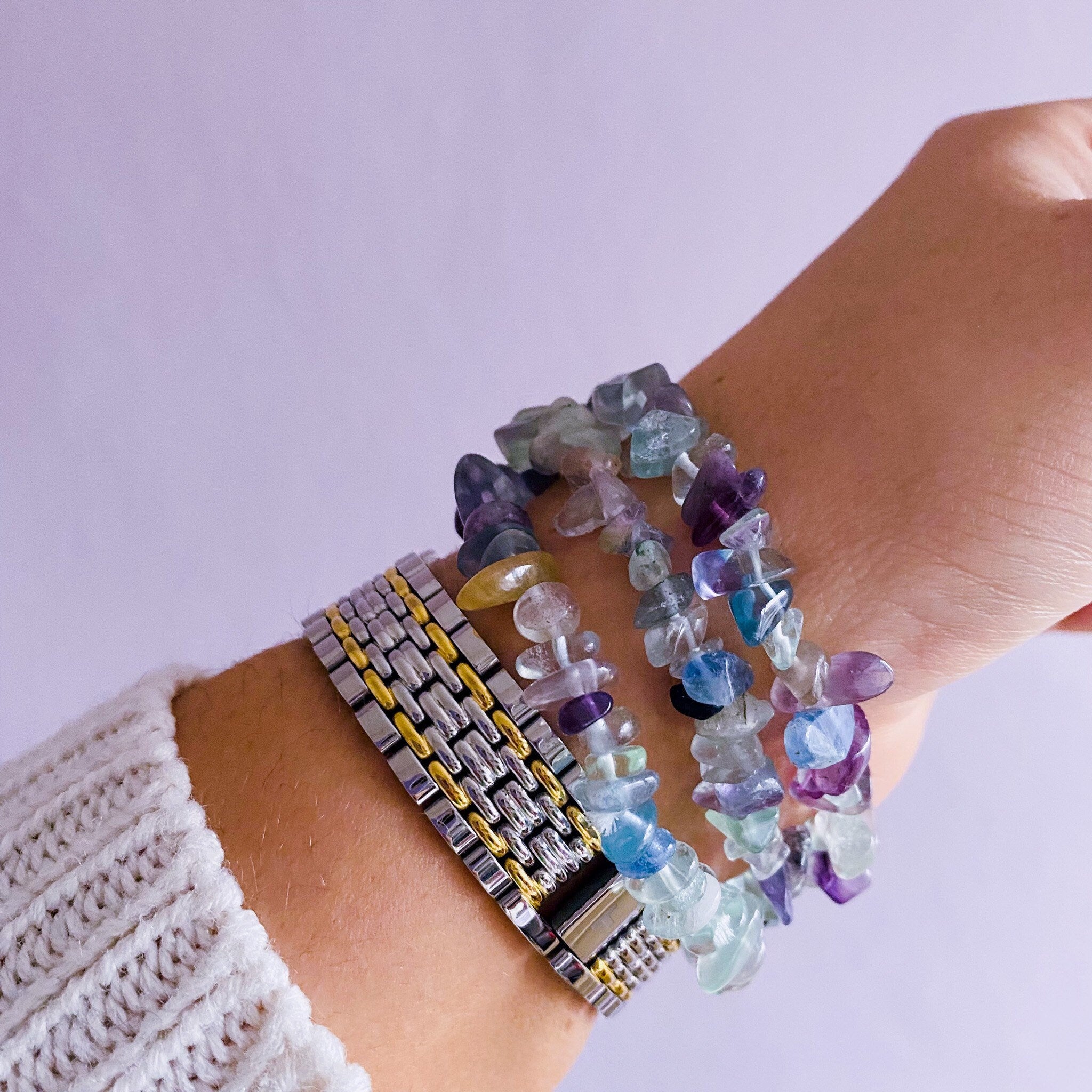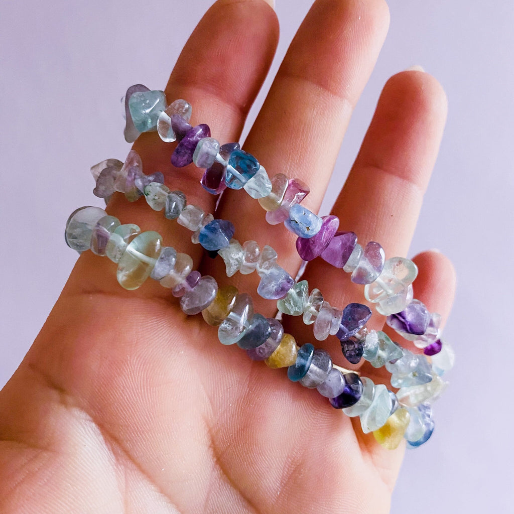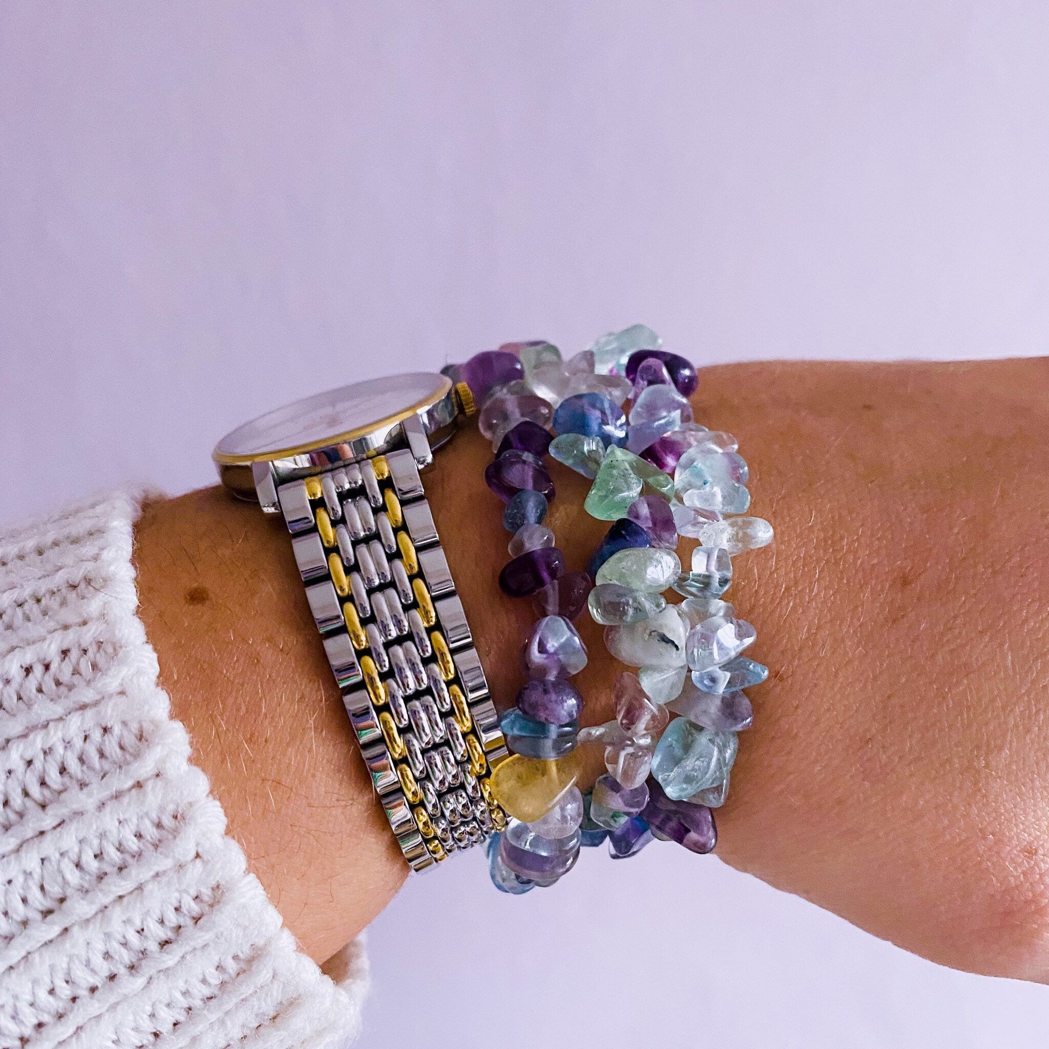 Gorgeous Rainbow Fluorite crystal chip bracelets