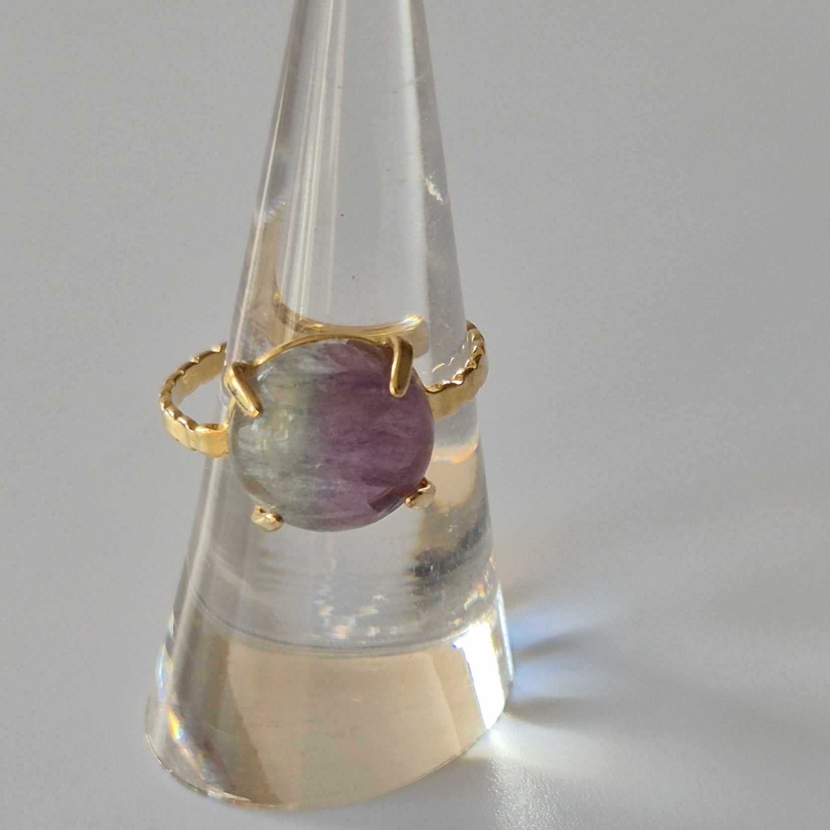 Rainbow Fluorite Ring - Circle - Gold Plated - Nickel and Rhodium Free - Copper Base - Adjustable Ring - Type B