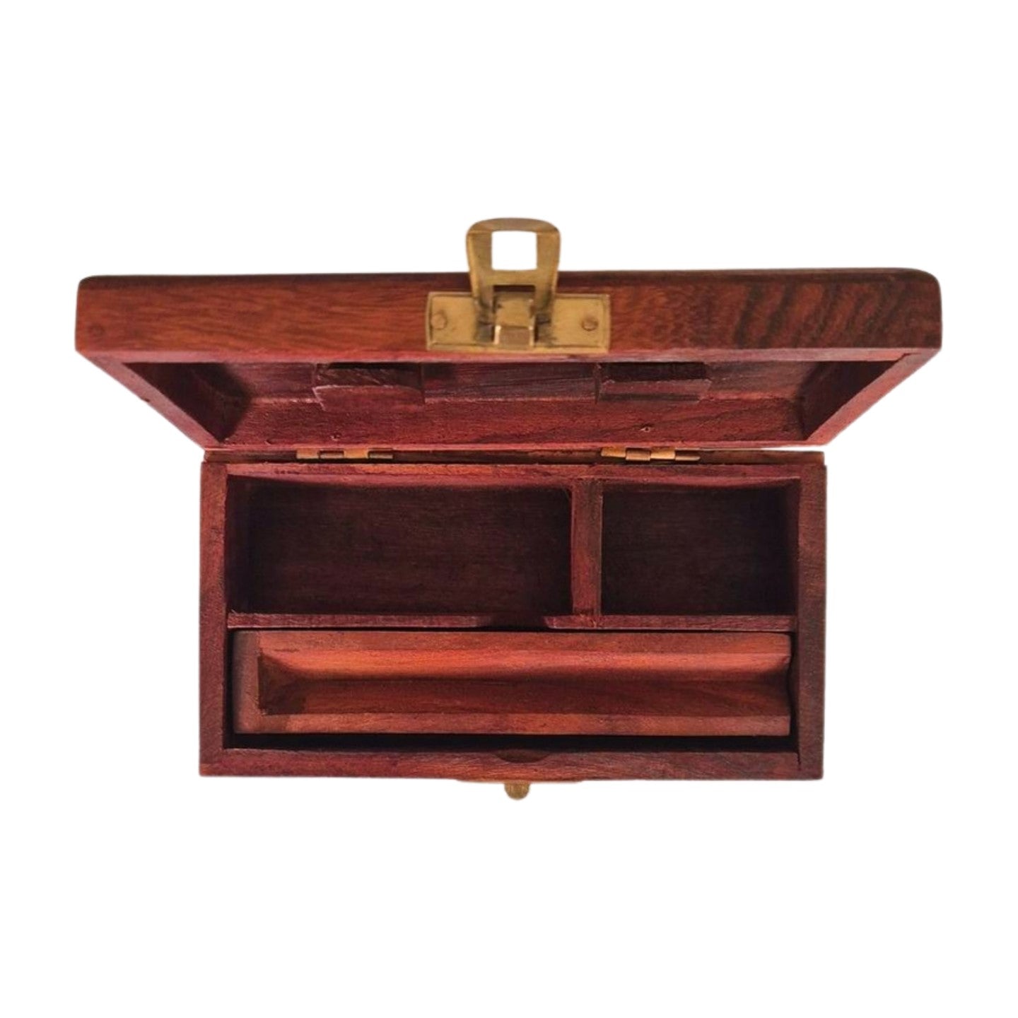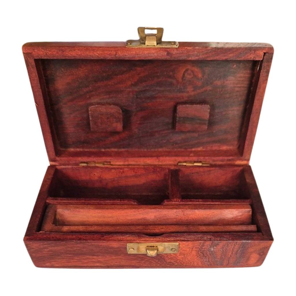 Measuring approximately 6 inches x 3.5 inches x 2 inches (15cm x 8.5cm x 5cm), these attractive little polished wooden boxes are hand-made in India, to provide everything you need to roll your own in style!