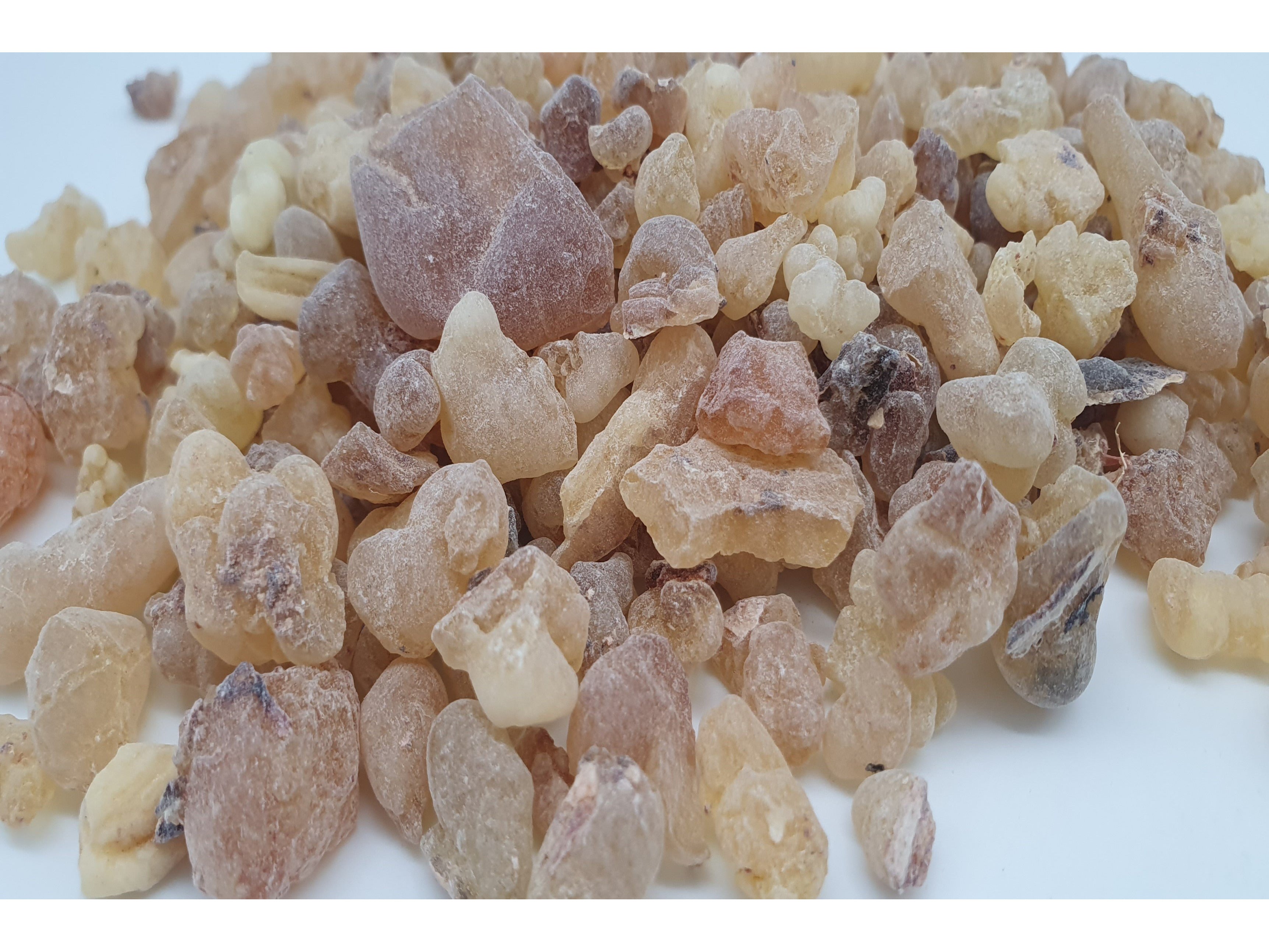 Somalian frankincense resin comes from Boswellia frereana and carterii trees, which are found in the Northern parts of Somalia. Incisions are made in the trunk of the tree where a sticky sap seeps. The sap will harden into clots of amber resin called frankincense.