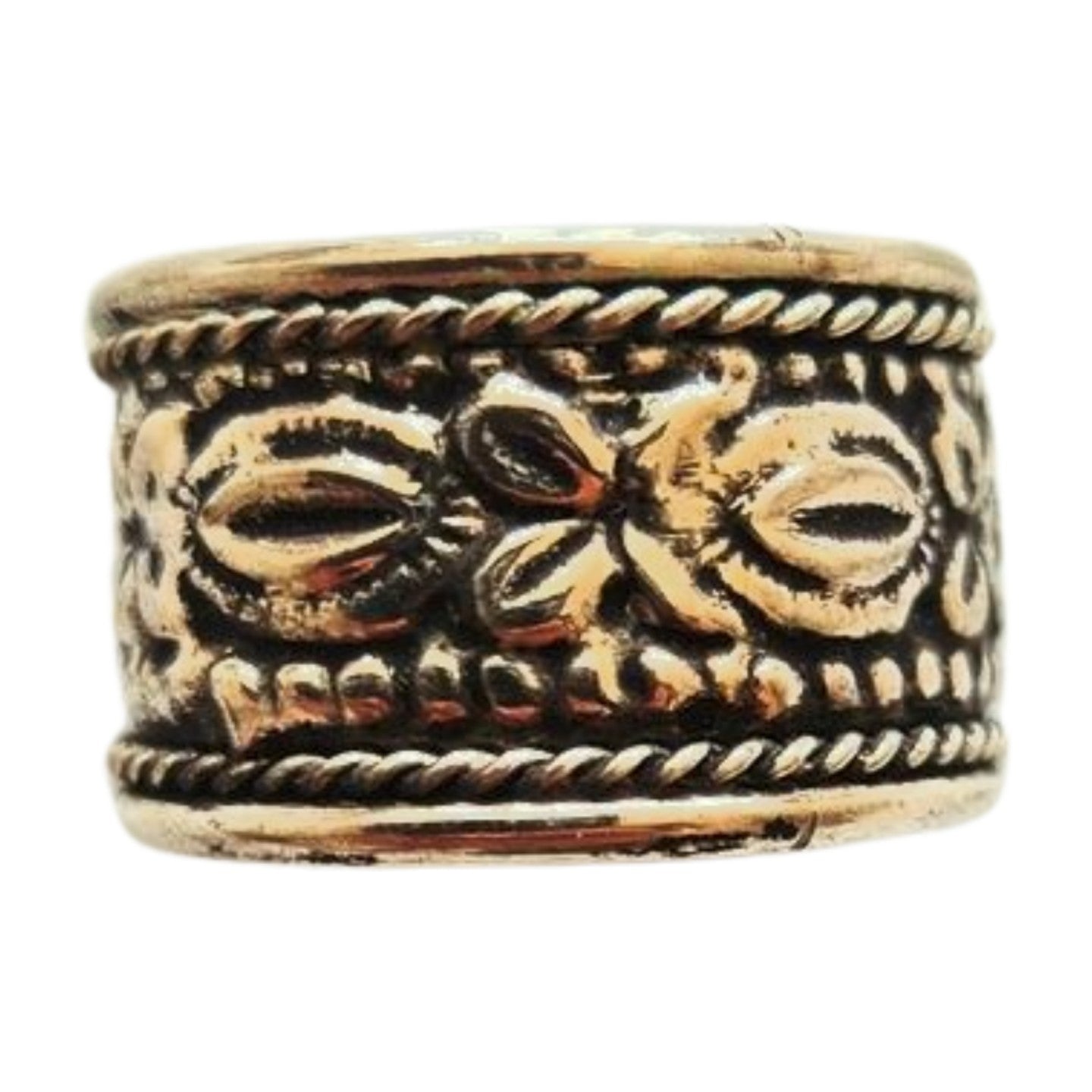This attractive silver Tibetan ring is decorated with a traditional pattern, accentuated by an antique-effect finish.