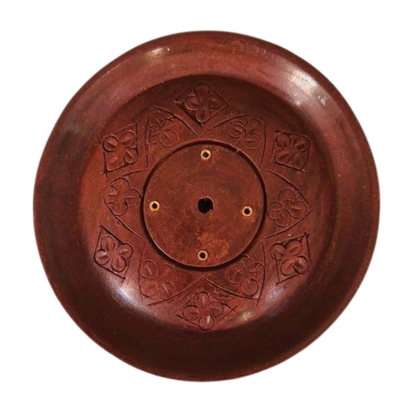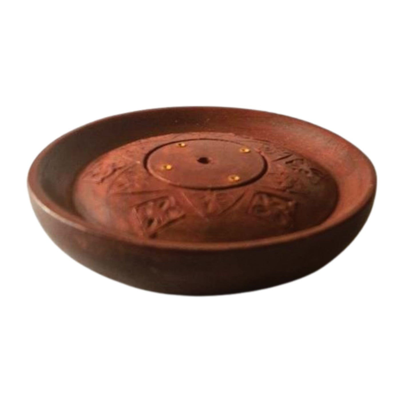 Measuring approximately 4.75 inches (12 cm) in diameter and 1 inch (2.5 cm) deep, this generously sized holder features a large central opening designed for Tibetan incense sticks or other sizeable dhoop sticks, along with four smaller holes suited for standard Indian-style incense or joss sticks.s.